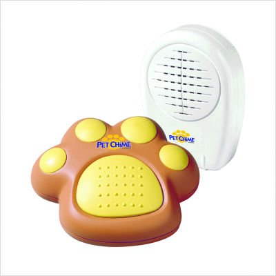 PP10G Tired of your pet scratching the door, barking, or howling when he wants to come inside. Want to teach your pet to tell you when they are ready to go outside. Pet chime is a portable, wireless electronic pet doorbell that allows pets to tell you when they need to come in or go out. Two piece device: a paw-shaped remote control transmitter and a receiver chime. The wireless paw is designed to look like a paw print and can sit on the floor or mount on the wall. When your pet pushes the pet chime paw, the chime tones to let you know your pet is ready. Easy-to-follow directions are included so very easy to train your pet. The chime gives you two choices of tones - either a dog bark or a ''ding-dong'' chimes. Features: -Pet Chime. -Pet chime is wall mountable or stands on a table. -Pet chime is a wireless transmitter works up to 100 ft away from receiver. -Multiple paws will trigger a single pet chime receiver. -Transmitter paw operates on one 9-volt battery (not included). -Receiver operates on 3 AA batteries (not included). -Koolatron provides a one year warranty. For more information on this product please view the Manual Sheet(s) below: Pet Chime Manual sheet