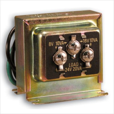 125C-A Features: -Wired door chime transformer. -Material: Metal. -Transformer is a tri-volt / clamp-on type. -Low voltage hardwired transformer. -Wired door chime transformer. -1 Year manufacturer's warranty. -No assembly required. Specifications: -Input: 120 VAC. -Output: 8 VAC-10 VA, 16 VAC-10 VA, 24 VAC-20 VA. -Dimensions: 2.13'' H x 2.5'' W x 2.25'' D. Installation Sheet